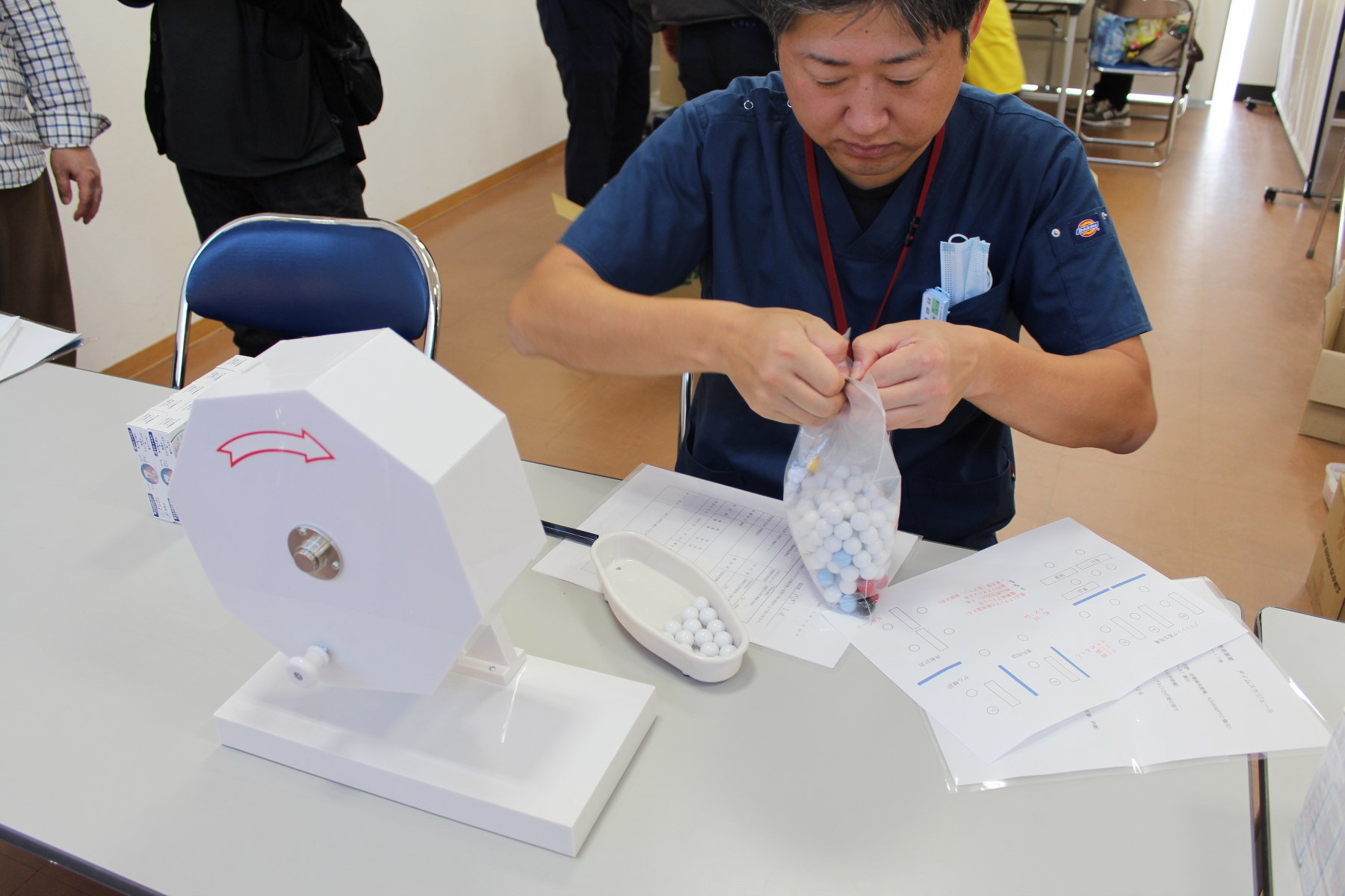 ![]() ガラポンの準備 |